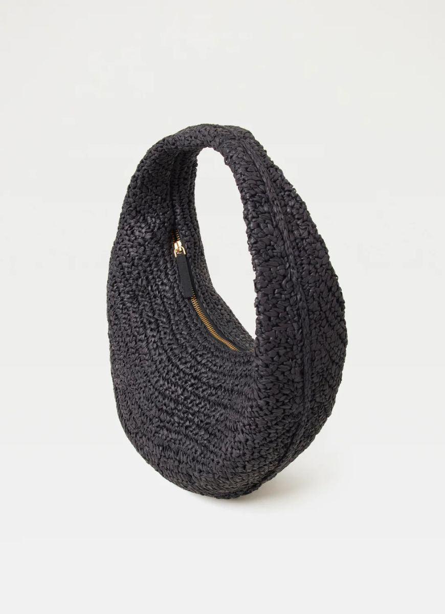 We're bringing things full circle with the Aya Bag. This slouchy moon-shaped paper raffia purse is fully-lined and has a functioning zipper to keep your things secure.