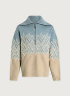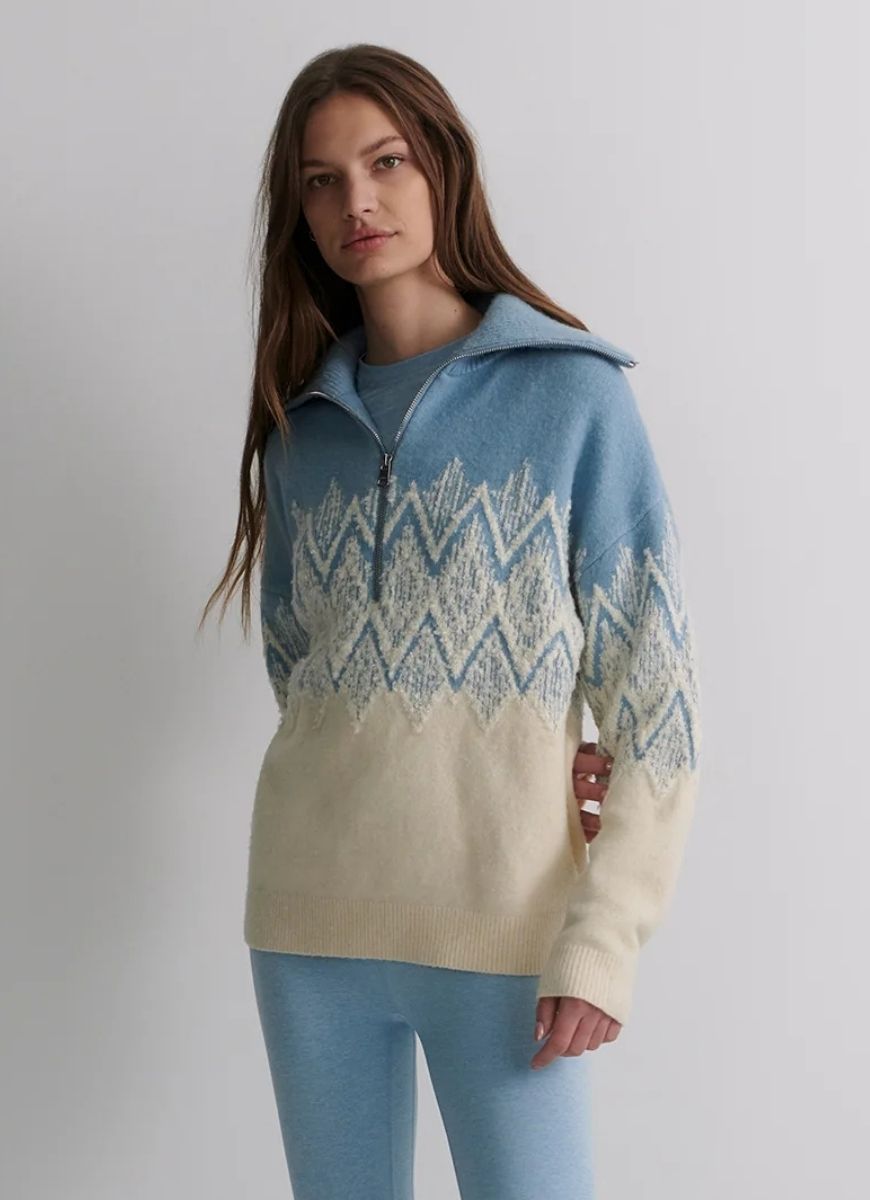 The Hedda combines a luxurious merino-blend yarn with a jacquard Fairisle pattern in a bouclé yarn for added texture. Super soft and comfortable, it's cut to a relaxed, longline shape and complete with a half-zip collar.