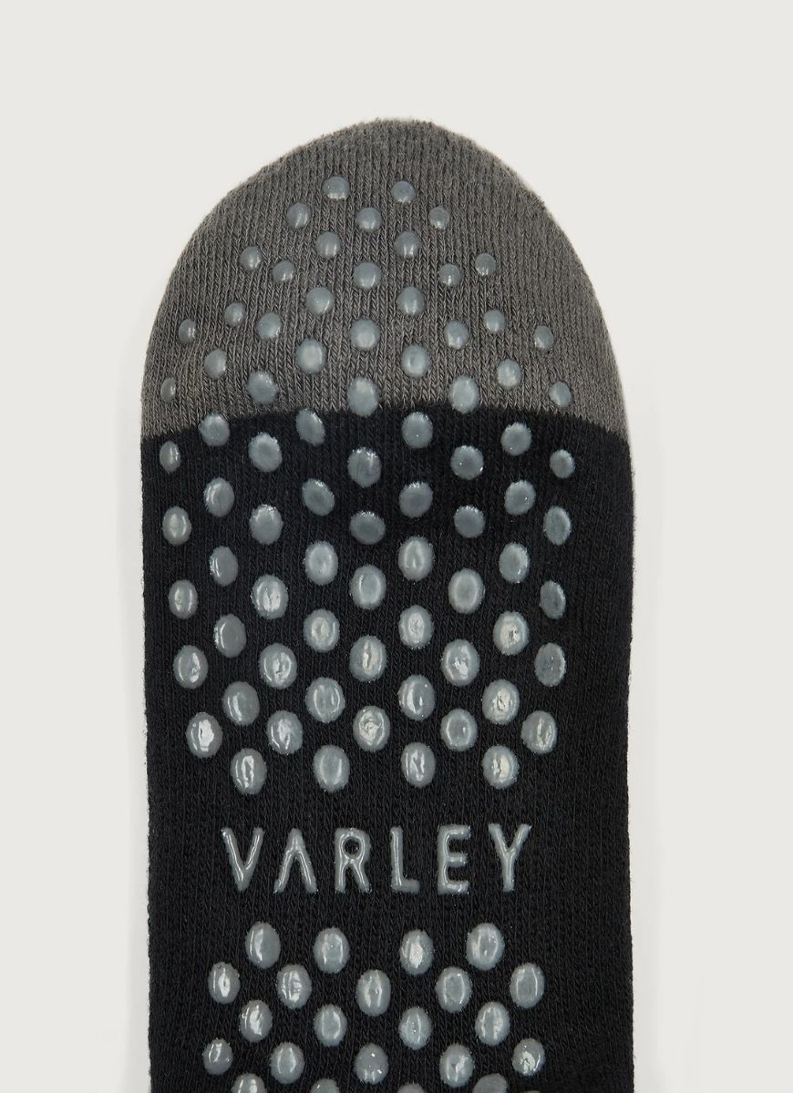 Featuring a micro terry cushioned footbed for added comfort and a Varley silicone grip pattern for secure traction, these socks offer the perfect balance of style and functionality.