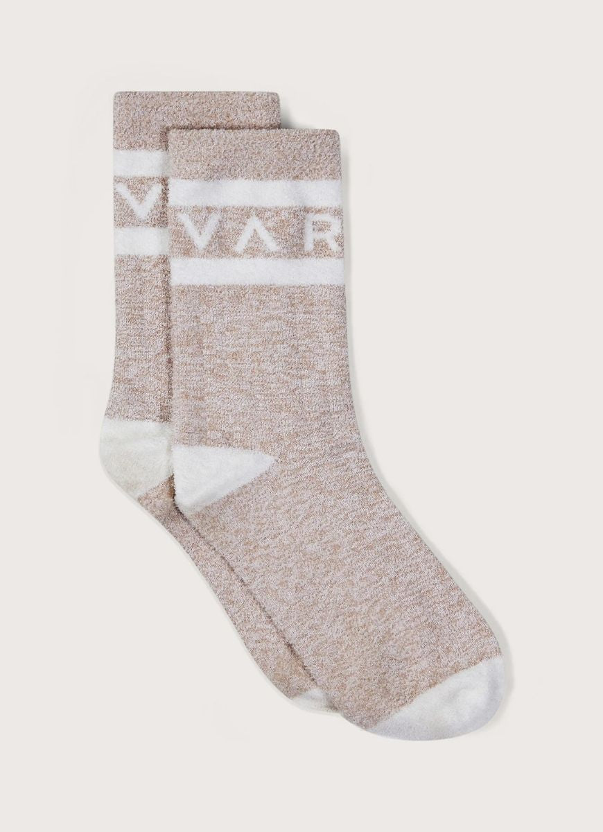 Woven in a bouclé-effect yarn, the Spencer Marl socks feature a Marl effect, a classic Varley logo stripe, and contrast heel and toe.