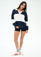The Katie Fleece Rugby feels luxuriously soft with subtle tonal stripes that give a refined sporty edge. Designed with a relaxed V-neck and effortless layering in mind, it’s your go-to piece to wear on its own or layer over your favourite basics. BEST FOR: Warm-ups, cool downs and cool weather workouts.