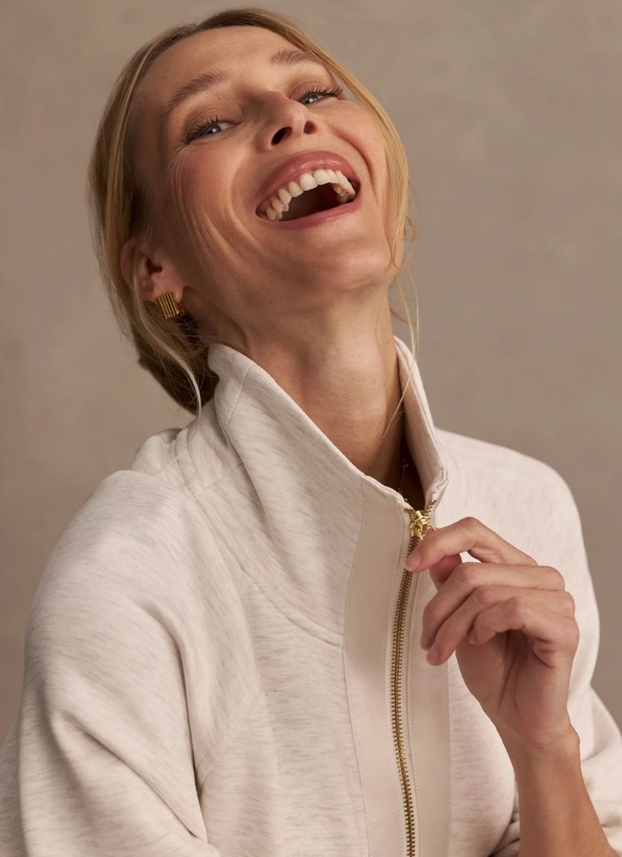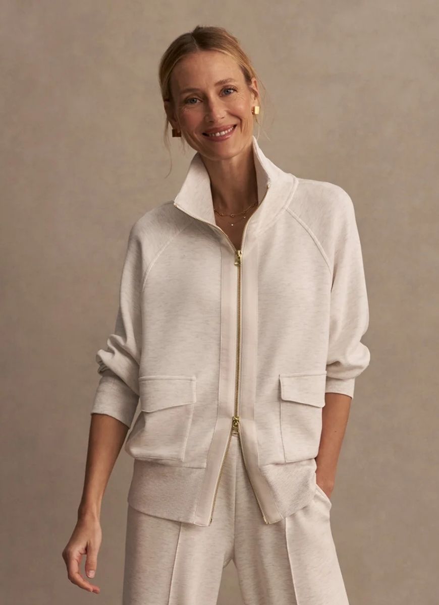Introducing the Roxbury. A sateen-trimmed zip-through sweat in our DoubleSoft® fabric that pairs perfectly with shorts, pants and activewear.
